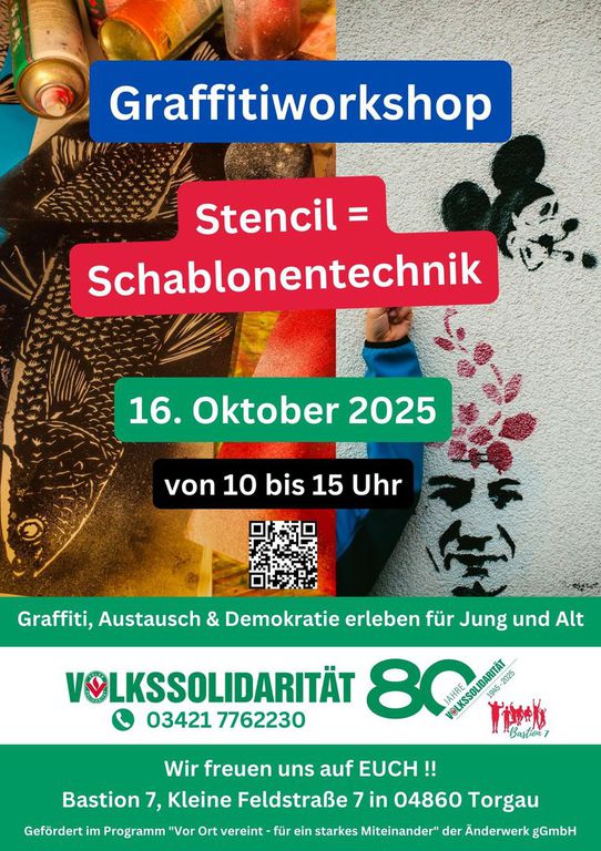 - Wir werden im Programm “Vor Ort vereint: Für ein starkes Miteinander” über die Änderwerk gGmbH gefördet und bieten verschiedene Urban Art Workshops (Graffiti, Tape Art und Upcycling etc.) an.