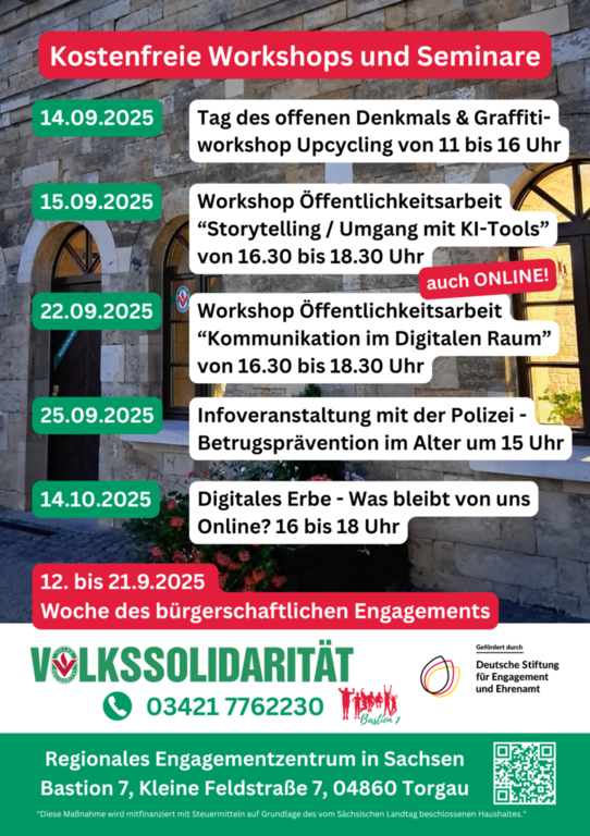 - Wir sind seit Januar 2025 "Regionales Engagementzentrum" in Sachsen.
